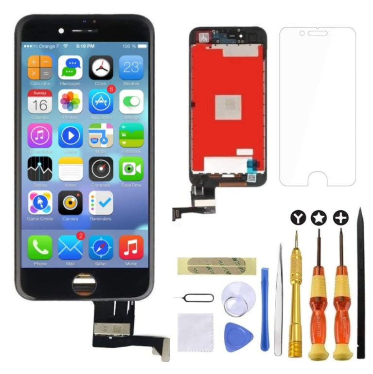 先日、データ通信専用のiPhone7を転がしてしまい外傷はなくもホームボタンが効かなくなっておりました。知り合いにiPhone12MAXを見せられ購入を画策するも税金のシーズン直前にそんな余裕があるはずもなく応急措置としてAssistiveTouchというソフトボタンで対応していたのですが、操作が面倒。なのでBFXという互換ホームボタンを購入(¥3,000)。しかし交換しても全く症状は改善せず。ググルと液晶への信号線がホームボタンと一緒になっていていて液晶パネルを交換すると回復する事が希にあるとの情報。それで液晶パネルキット(¥2,600)を購入。毎度この手の作業はLIVE or DETH。6日分の弁当代がパーになるのかという思いで交換作業。交換後、液晶の色は純正とは微妙に違うものの、肝心の純正ホームボタンで正常に動作。今回はビンゴということで無事修復完了。結局BFXのホームボタンが使わずじまい。つまり純正のものが使えたのでTOUCH IDも問題なく使用可能。何のこっちゃという方は別として内容がわかる人で同じ状況に陥った人はお試しあれ!付属の防水・接着用のシールは寸法が合わず手持ちのストックを利用。保護ガラスは最初から割れていましたがこちらもストック利用で不問とす…。